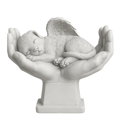 Gedenken Sie Ihrem geliebten Hund mit dieser personalisierten Engel-Hundestatue in Händen – eine berührende Gartendekoration und ein Symbol für ewigen Frieden. Diese liebevoll gestaltete Tier-Gedenkfigur zeigt einen schlafenden Engel-Hund, der behutsam in zwei offenen, schützend geformten Händen ruht – ein Ausdruck von ewiger Liebe, Ruhe und Geborgenheit. Als personalisierter Tiergrabstein ist sie ein würdevolles Andenken an Ihr treues Haustier.