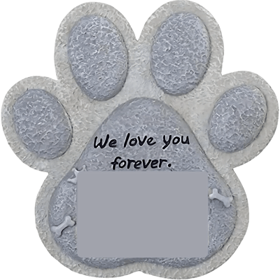 In Form einer Pfote gestaltet, vereint dieser Tiergrabstein einen geschützten Bilderrahmen, eine eingravierte Botschaft und liebevolle Knochen-Details zu einem persönlichen Andenken für ein unvergessenes Haustier.