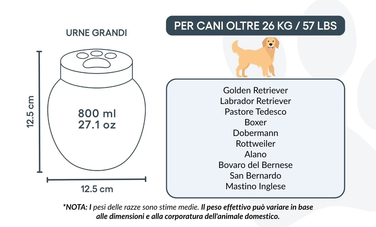 Abschied von einem geliebten Liebling zu nehmen, ist nie leicht. Unsere personalisierten Tierurnen aus Keramik wurden mit Sorgfalt gefertigt, um Trost zu spenden und eine würdevolle letzte Ruhestätte zu schaffen. Jede Keramikurne ist in Handarbeit veredelt und in drei Größen erhältlich – passend für Hunde unterschiedlicher Rassen und Gewichte.