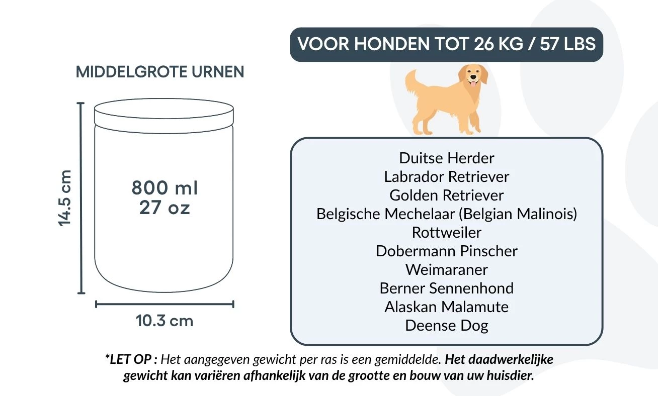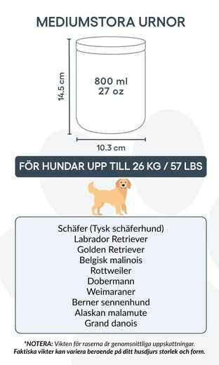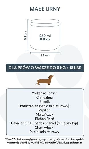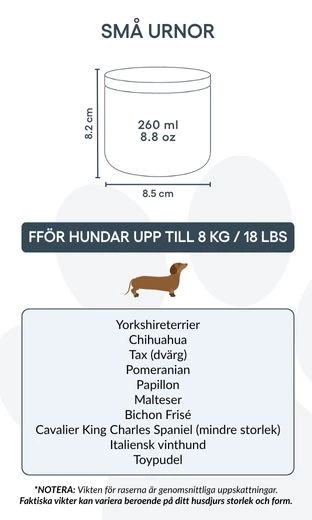 Adaptée aux petits et moyens chiens, cette urne n’est pas qu’un simple contenant : c’est un souvenir précieux, symbole du lien unique entre vous et votre compagnon. Placée sur une étagère, une table ou dans un coin commémoratif, elle vous permet de garder sa mémoire vivante jour après jour.