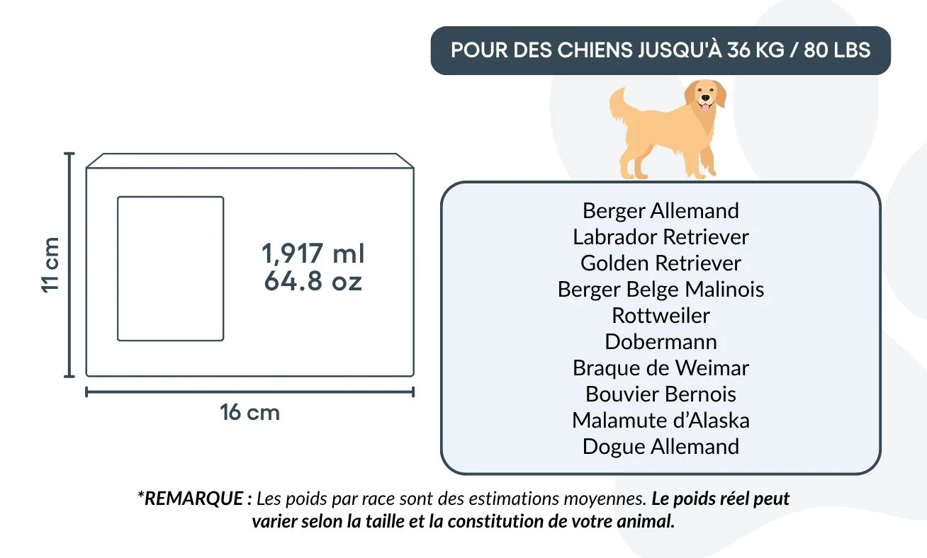 Convient pour les chiens jusqu’à 95 kg / 204 lb